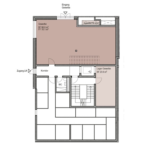 | A.8U101 | Gewerbe | UG | Haus A | 96.0 m2 | 23.6 m2 | Frei ab 2028 | |